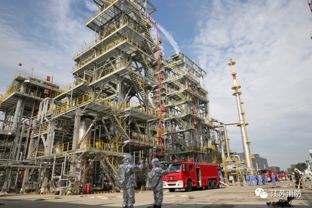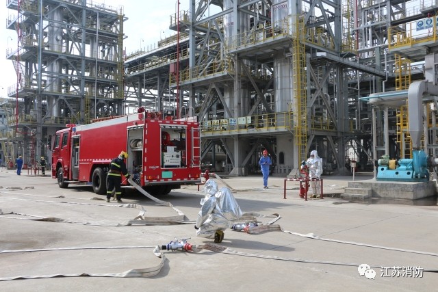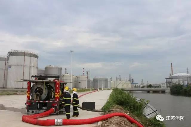 这并非真实火灾事件,而是江苏省公安消防总队在苏中地区组织开展的一场石油化工跨区域无预案灭火救援实战拉动训练考核。