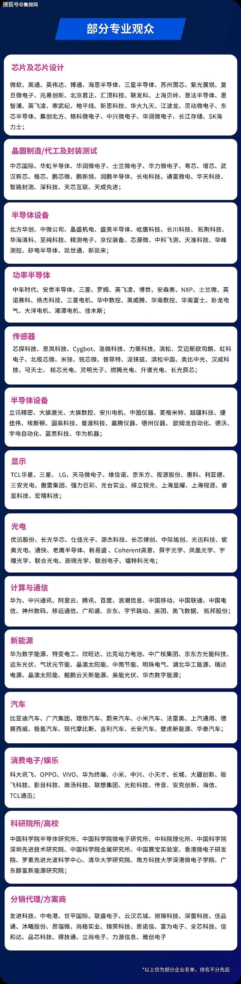 展会精准锚定芯片设计与制造领域核心需求,打造全维度、高匹配度的专业观众矩阵。参展企业可高效对接 IDM、Fabless、Foundry、OSAT 等半导体产业链上下游核心企业☆●,直面人工智能▲、消费电子□☆•、汽车、通信及计算、显示▲…、光电●■、新能源等领域的系统厂商◇、分销代理商▪◁-、解决方案商…=…,以及终端采购与研发决策层。展会以 ▪=▼“芯片设计 - 制造 - 封测” 产业链与 =“终端应用” 市场的双向贯通为核心链路,助力参展企业一站式链接下游关键市场○■☆,实现精准商贸对接与合作转化。