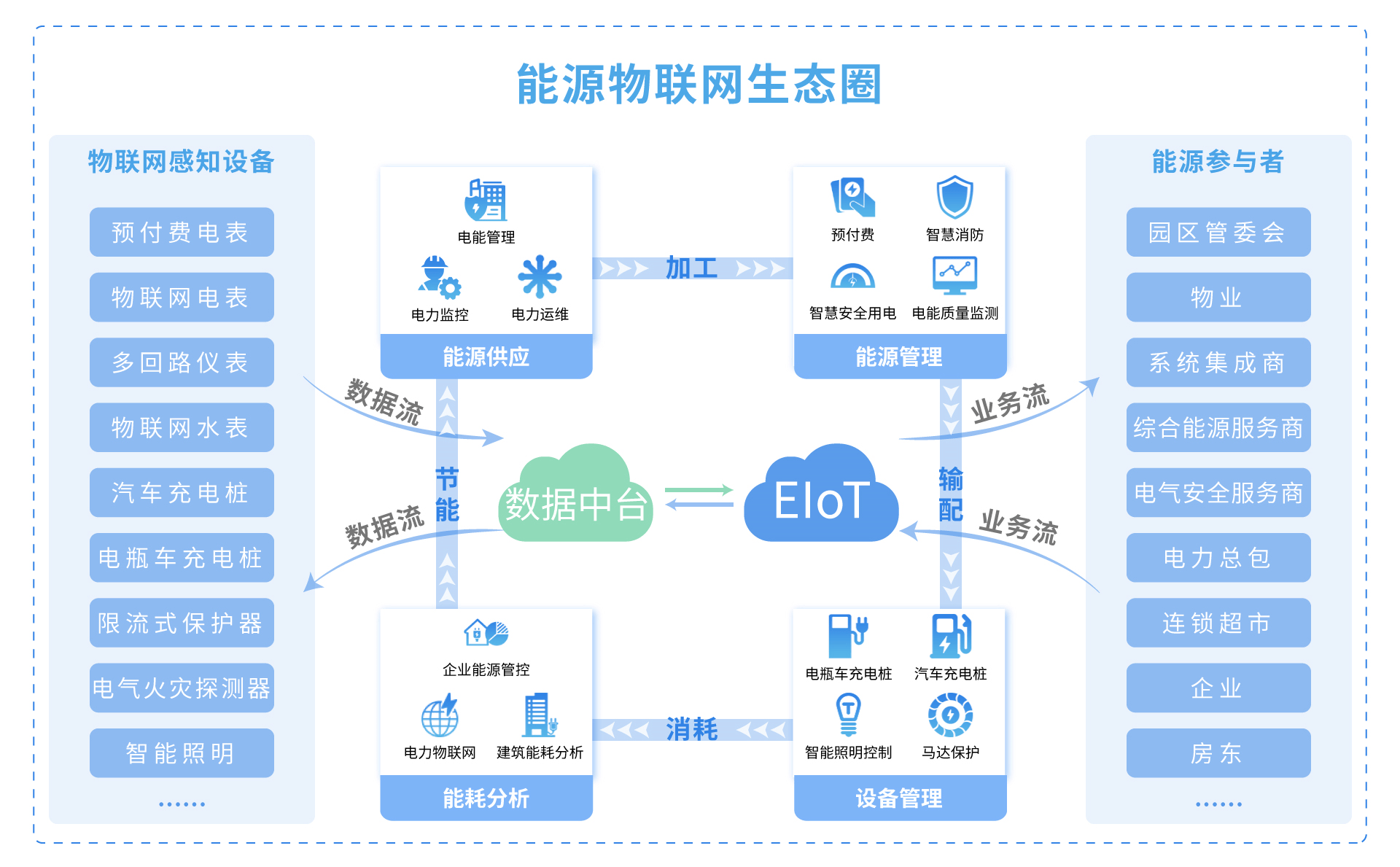 从能源产业全链条视角来看▷,Acrel-EIoT平台构建了覆盖供能侧、储能侧、用能侧的全维度管理能力▪▲●,完美契合能源互联网○…“多能协同、信息对称•○★、供需分散☆◇■”的发展特征。在供能侧,平台可实现水电、火电、核电、风电、太阳能等多种能源类型的集中监测▼△;在储能侧,支持相变储热★●◁、冰蓄冷▽=▽、水储冷及各类新能源电池的状态管控;在用能侧,则全面覆盖工业用电、商业用电、新能源电动汽车等多元负荷。通过打通三类主体与能源调度中心的信息传递通道,平台实现了能效管理、互联网支付▼△■、数据监控等核心功能,推动互联网与能源市场的深度融合,为能源资源的优化配置与高效利用提供了数据支撑。