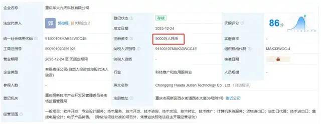 2025年12月24日,重庆华大九天科技有限公司(以下简称○“重庆华大九天”)成立,注册资本9000万元。