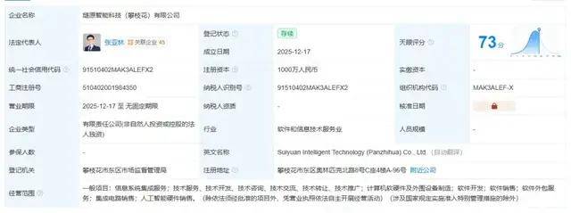 12月17日,燧原智能科技(攀枝花)有限公司(以下简称▼•“燧原智能”),注册资本1000万元•▪★。