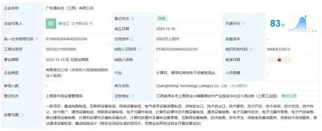 2025年12月19日,广和通科技(江西)有限公司(以下简称“广和通科技”)成立,注册资本5000万元。