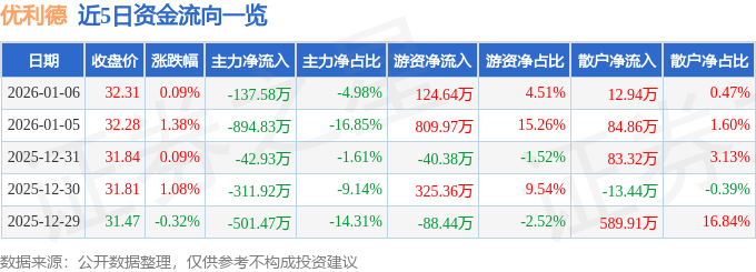 1月6日的资金流向数据方面-▼,主力资金净流出137☆•◆.58万元,占总成交额4▷△.98%▲▽,游资资金净流入124.64万元,占总成交额4=▽▷.51%,散户资金净流入12.94万元,占总成交额0.47%。