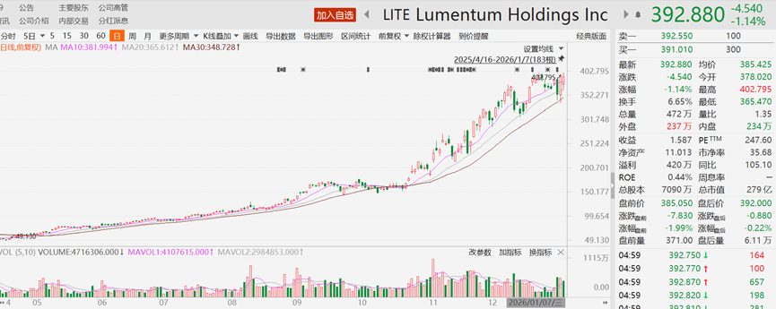 值得一提的是★…,美股光芯片概念股Lumentum也在近日创下了股价新高=■★,近半年来股价涨超280%。