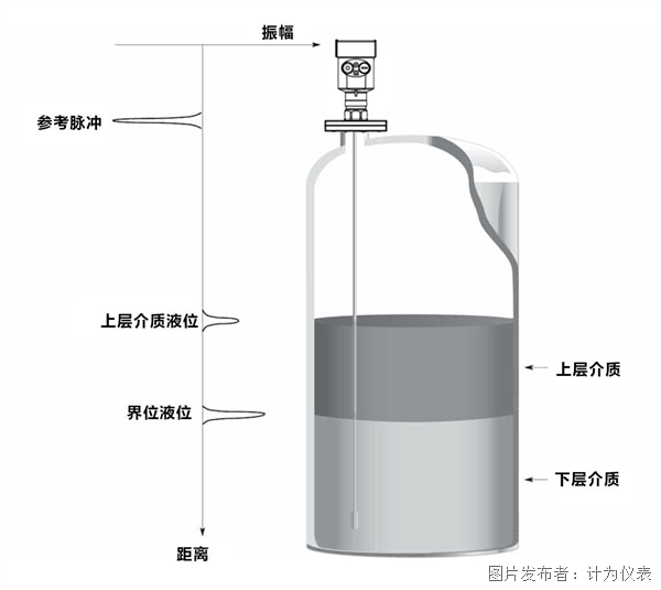 导波雷达在上下两相介电常数差异足够时,能够在气-液界面和液-液界面形成多个反射点●◁●,实现液位与界面的同时测量。