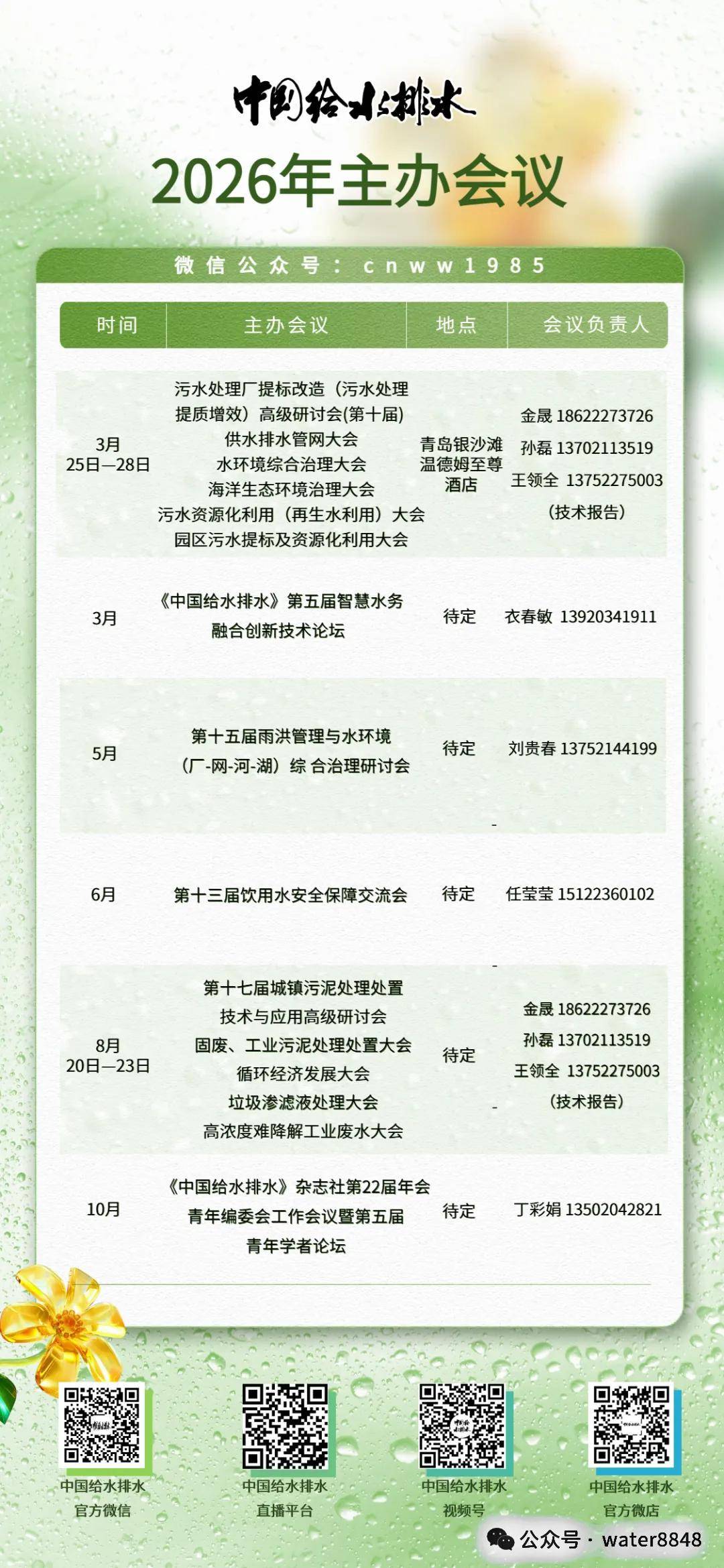中国给水排水2026年污水千人大会(城市更新▽、污水提质增效、供排水管网★◁▼、水环境、溢流污染治理、园区废水、污泥处理处置)主办协办技术报告邀请
