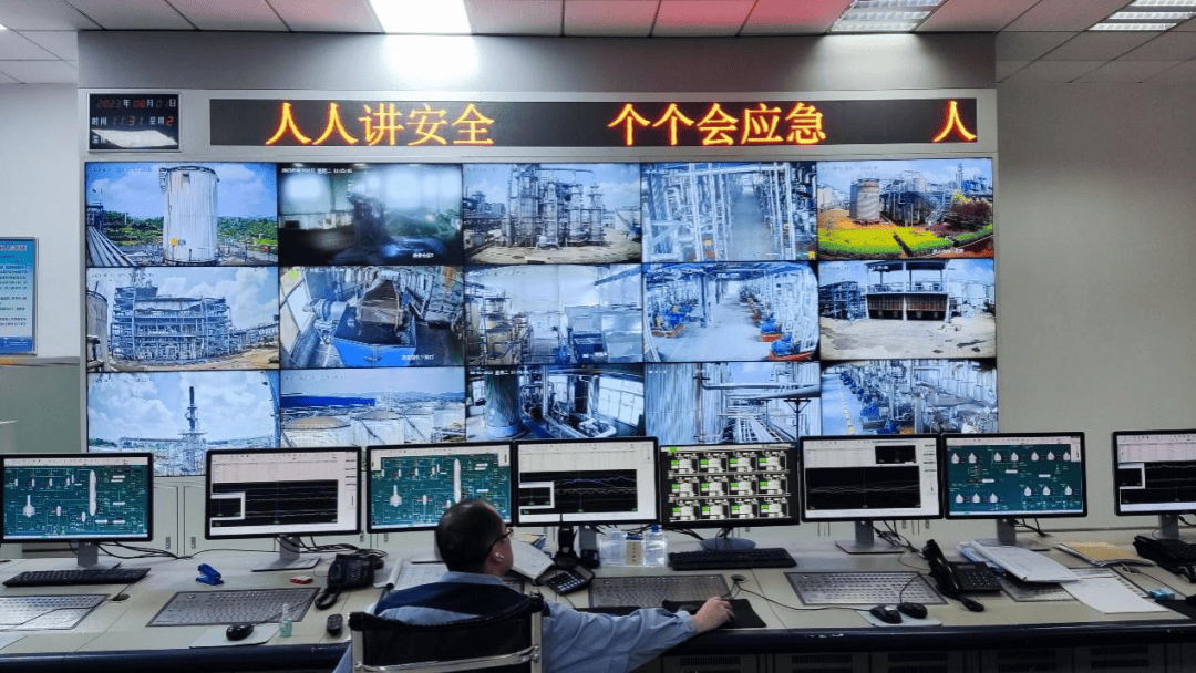 一、构建智能生产管控体系,筑牢本质安全防线。联动DCS(工业自动化控制系统)、SIS(安全仪表系统)等核心系统,实现对生产装置液位、流量、压力、温度等关键参数的实时监控与数据采集,精准完成生产装置运行及生产过程的智能调控,可快速定位并及时处置各类异常问题。通过搭建工艺参数优化模型与能耗趋势预判分析模型,动态优化工艺运行方案,有效降低装置综合能耗,实现生产过程可视化、生产管理精细化。同时,DCS系统同步接入厂区全域火灾报警装置与高清视频监控系统,实现生产场景可视化全覆盖。此外,公司搭建安全生产信息化平台,覆盖重大危险源监测、隐患闭环治理、作业合规管控、人员行为监管等全场景,全面强化企业本质安全水平。